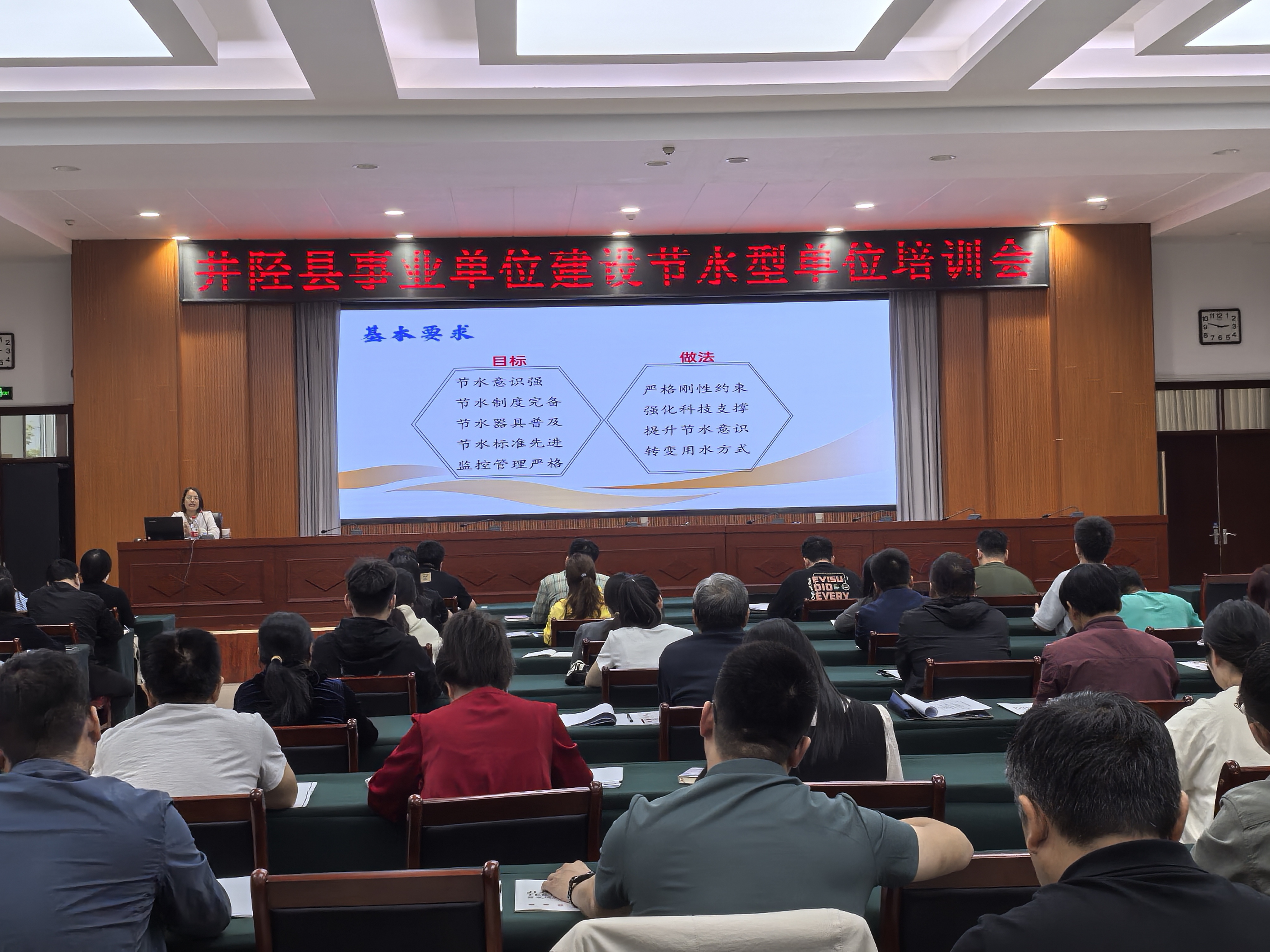 9月27日下午,受井陘縣政府辦公室委托,就事業(yè)單位建設(shè)節(jié)水型單位事宜,我公司提供技術(shù)培訓(xùn)。培訓(xùn)中講解了該項(xiàng)工作的實(shí)施方案,詳細(xì)講解了評價(jià)標(biāo)準(zhǔn),提示工作中的有關(guān)注意事項(xiàng)。